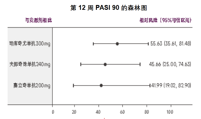 贝叶斯网络荟萃分析结果显示,第12周时,司库奇尤单抗300mg治疗中重度斑块型银屑病疗效最佳,提示其是更优的IL-17A抑制剂。